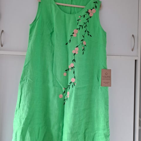 Lækker kjole i hør, aldrig brugt el. vasket.