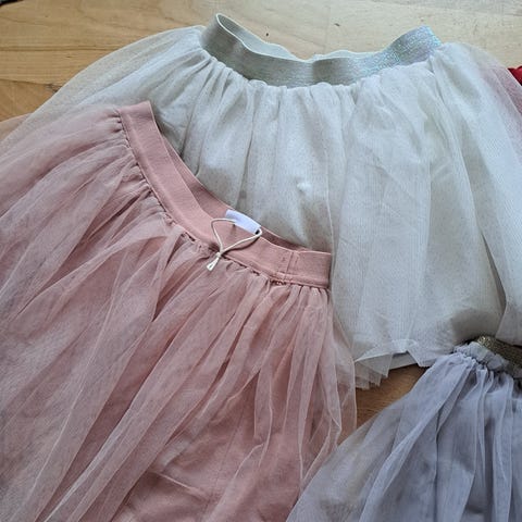 Super sød mørkeblå nederdel i flere lag, med blødt tyl yderst som falder flot og let - en virkelig elegant og lækker nederdel.