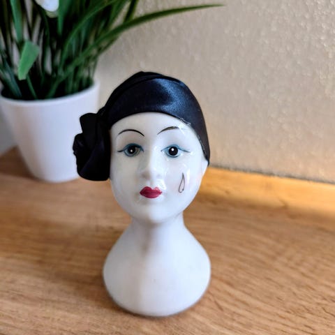 Særdeles smuk og yndefuld antik massiv kvinde statuette i perfekt stand og i bemalet keramik eller noget gips-ligende tungt/massivt materiale
