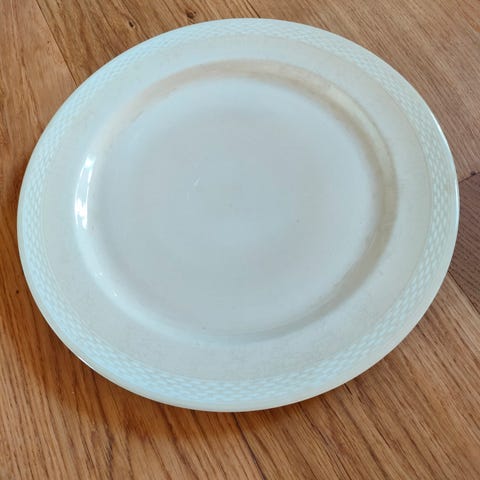 Rundt fad (30 cm) fra Alma, Aluminia. Fadet er i usædvanlig fin stand. Stort set ingen slidmærker, ingen krakeleringer.