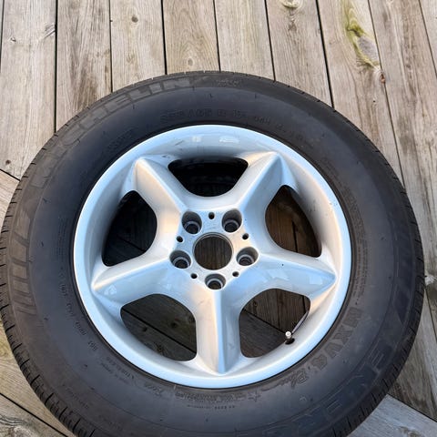 Fælge m vinterdæk. Fordæk kun kørt 6 md så ca 6mm mønster. Bagdæk 2mm mønster