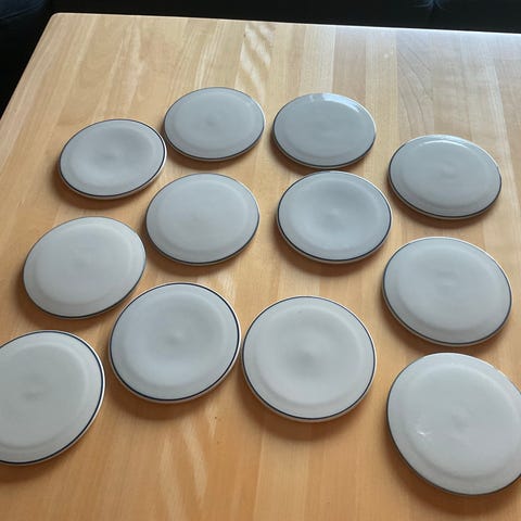 20 Kaffekopper -26 underkop tallerkner - 29 dessert tallerkner- 5 middags tallerkner - 7 frokost tallerkner - 1 saltkar - 16 dybe tallerkener - 10 kr pr. stk.