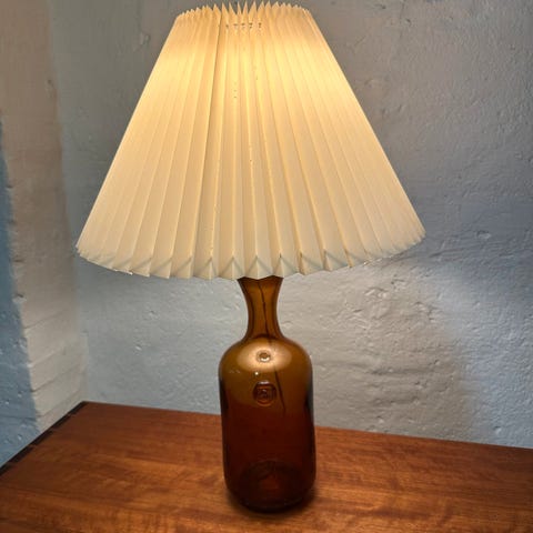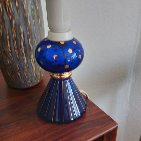 Utrolig Kitsch stil bordlampe med glas fra Kosta Boda Sunflower lysestager , de er dog lavet sådanne til denne lampe. Forgyldt messing montager og fod. 61cm høj, dertil skærm.