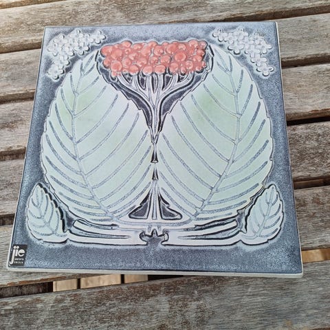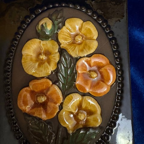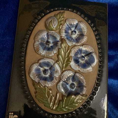 Gantofta, Sweden. 2 stk relief på metalramme, Blomstermotiv. Totallængde 36cm