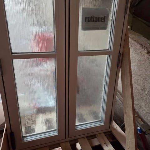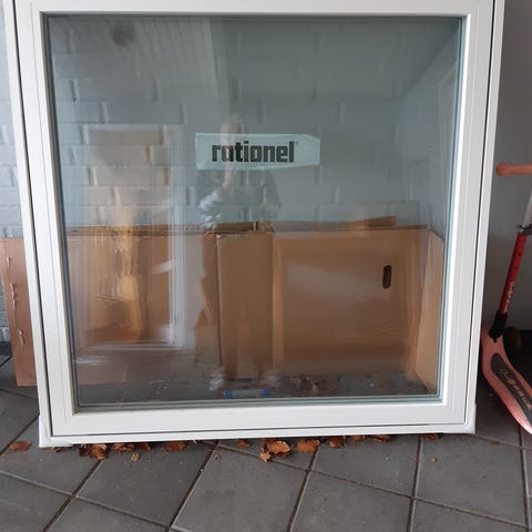Nyt vindue fra Rationel, mål ses på tegning. Renoveringsprojektet blev lavet om, så vinduet kom i overskud