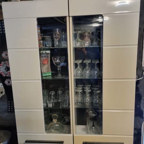 Væghængt skab med 4 låger fremstår I en god stand med almindelige brugs spor uden at være misligholdt.