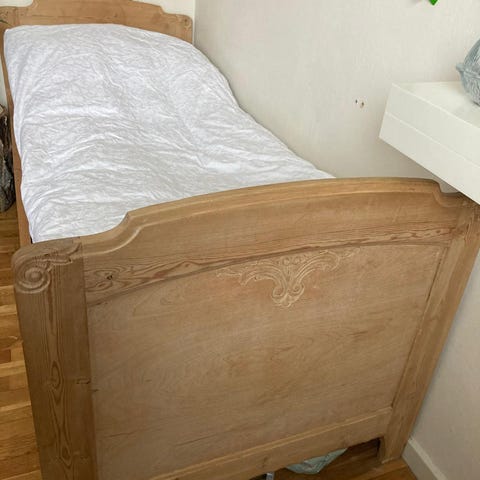 Karlekammerseng, To meget smukke senge, inkl. lameller, har været brugt som dobbeltseng, men er lavet som enkeltseng