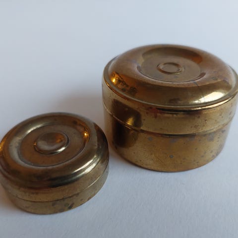 Den store spand måler Højde: 27 x Diameter: 29 cm. Den lille har målene Højde: 24 x Diameter: 25 cm.