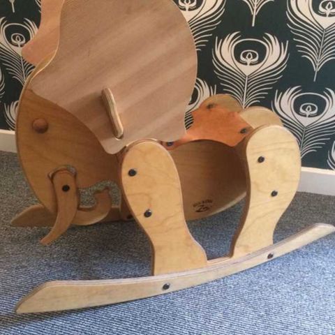 Vintage 70er træ gynge elefant.