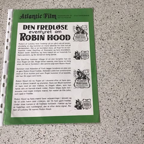 Filmprogram, De Fredløses Konge. Den store Robin Hood-film i farver