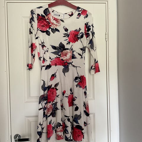 Meget fin multifarvet kjole, såvel til hverdag som til fest