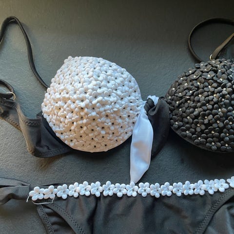 Flot farverig bikini med formede skåle i 70F og trusse i str. M.