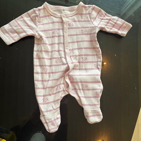 Sparkedragt med mønster. Str. 56. Knaplukning. Mærke: Småfolk.