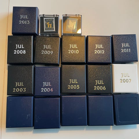 10 pins fra primært quiltetræf, Lancaster, Amish Country og julemærket 2002