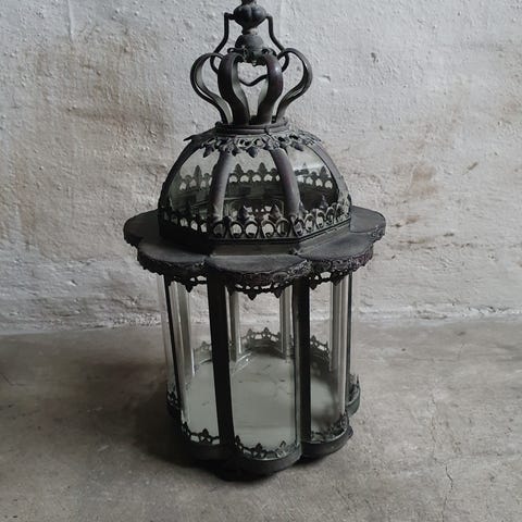 Der er små buede staldvinduer på alle fire sider af lanternen og en lille skorsten i toppen.