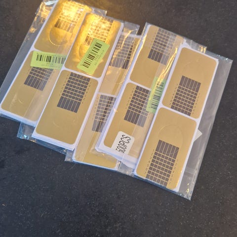 Shimmer and sparkle neglesæt. Der er åbnet nogle poser men der er stadigvæk noget tilbage. Der mangle nogle negle, men man købe nye og bruge.