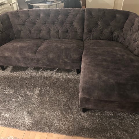 Supergod chaiselong sofa i mørkeblå velur – Kun 5000 kr