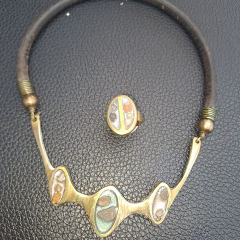 Det ligner, men er IKKE guld, derimod messing og to perler. Selv et trænet øje vil have svært ved at se forskellen. Halsringen kan mod merpris på 50 kr ombyttes til en forgyldt halskæde i sterlingsølv. Hvis ønsket, medsendes en PU lædersnor ub.
