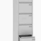 Gråhvidt metal arkivskab med nøgle. 5 skuffer, låses samlet. Kun en skuffe kan trækkes ud af gangen. Som nyt, brugt meget lidt. Nypris ca 10.000