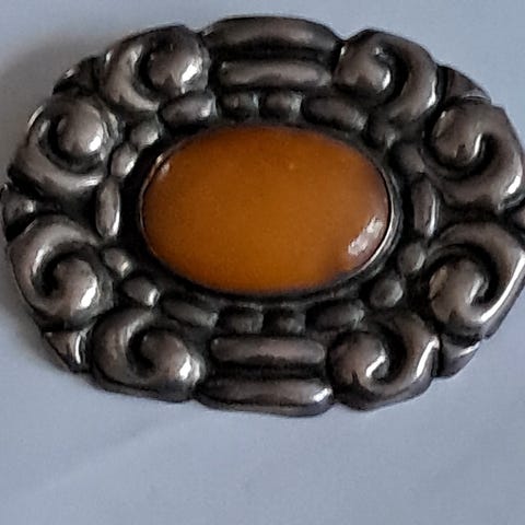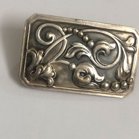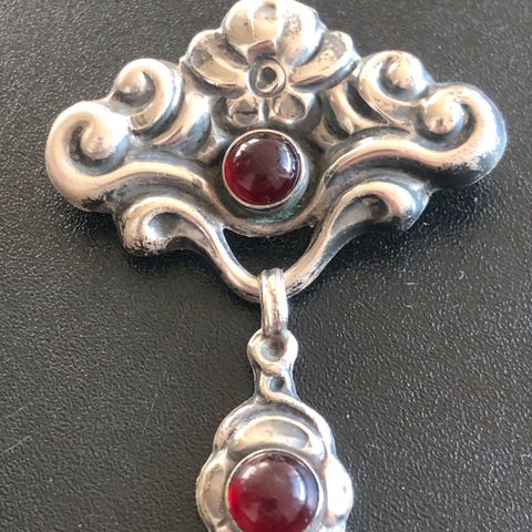 Vintage skønvirke sølv broche 826S med tre vedhænge mærke R S J ( Rasmus Jensen.Horsens 1909-1948) længde 9cmx5,2cm