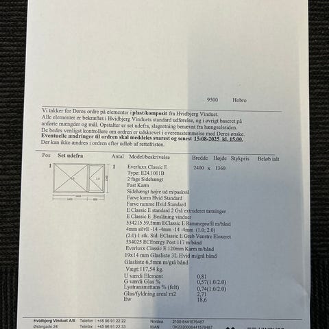 Nyt vindue, har været monteret i 8 uger. Fejler intet. Udført med rednings åbning i den ene side. Mål 2985/1320 mm