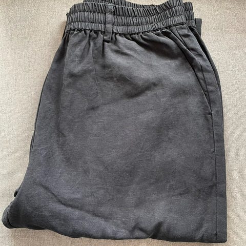 Et par flotte glans sorte bukser fra Second Female. Størrelsen er S. Sælges da jeg ikke passer dem længere. Er brugt og har brugsmærker, i form af tråde trukket i stoffet, men stadig i god stand.
