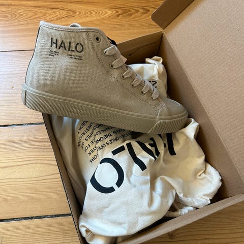 HALO FIELD SHOE MID byder på et robust, minimalistisk udtryk. Sneakeren har en overdel i rå kanvas, mellemhøj hælkappe og er udstyret med en kraftig gummisål, der gør dem tidløse og yderst holdbare. På hælkappen findes et diskret logo. Skoen er normal i størrelsen.