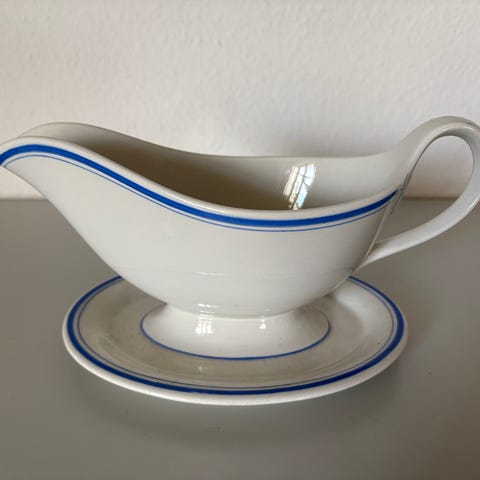 Aluminia sovsekande blå kant. Krakeleret. Men ingen skår.