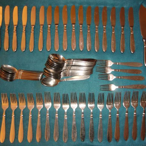 Sjælden samling af bestik designet af Jens Harald Quistgaard. Følgende hører til samling: