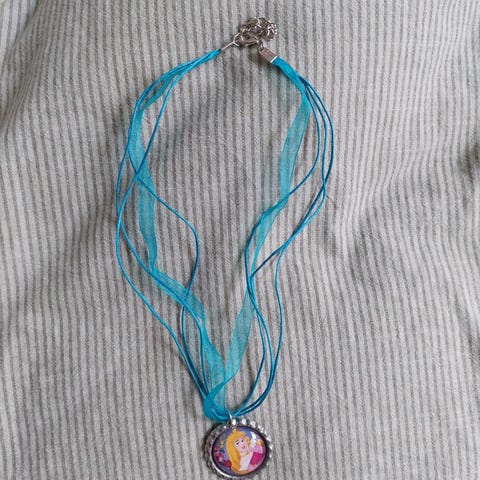 Flot halskæde med blå stof "kæde" Prinsesse halskæde med Tornerose