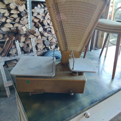 Sælger denne gamle købmandsvægt da vi ikke længere har plads. Har brugt den som pynt i vores hjem med en plante
