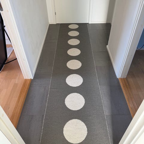 Viggo gulvmåtte i ftalatfri PVC og polyester fra Pappelina. Farve: grey/vanilla.