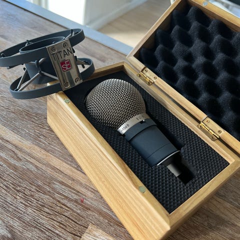 Stormembran mikrofon. Mikrofonen har ridser og brugsmærker.