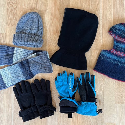 Vanter, Vinter tilbehør, Diverse, str. findes i flere str., En mørkelilla tyk elefanthue med gråt for str 3-5 år.