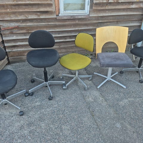 Fra 200kr til 500kr pr stk. Den ene er defekt. De andre virker perfekt. Drejestol arbejdsstol kontorstol