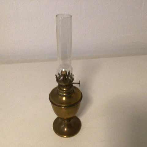 Petroleums Loftslampe i messing, kuppellåg limet, nypudset , befinder sig i Virring ved Skanderborg