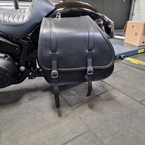 Der er lås og tasker med til den. 2 hjelme kan også købes med.