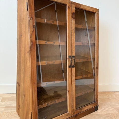 Gammelt vitrine skab - sat i stand og malet i en flot varm sandfarve. Der er sat nyt greb på - svensk design.