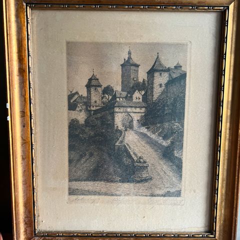 Fin radering - Kunstner: Ernst Geissendorfer - Motiv: Rothenburg ob der Tauber - Signeret i bly