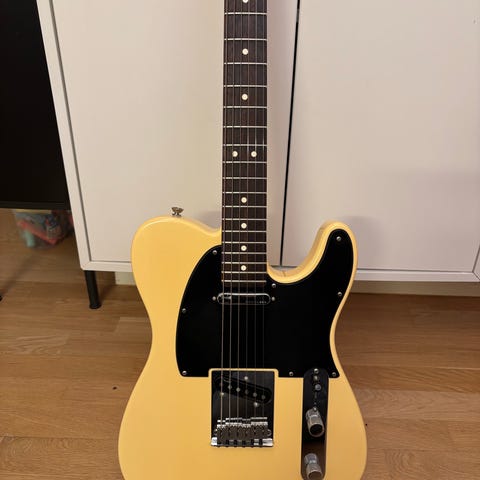 Japan Tele fra 80`erne. Er slet ikke sikker på oprindelse. Købt brugt for mange år siden. Relic fra DY London , dog ingen doku.. Eftermont. Babibz Bridge for bedre sustain. Den gamle haves. Mini bånd som ny og ultra lav aktion. Formentlig origial P.U. Priside Kr. 8500. Bud modtages.