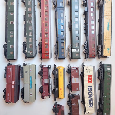 6 tog 22 waggons skinner fra Lima og Fleischman forskellige huse og kataloger Samlet pris kr. 2777