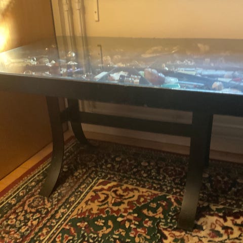 Sofabord, andet materiale, b: 75 l: 175 h: 50, Super unikt Sofabord med smedejerns stel og flot glasplade