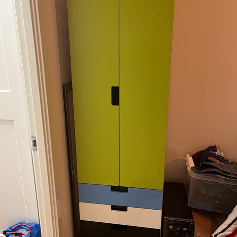 Sælger dette fine børneskab til opbevaring af tøj og sko.