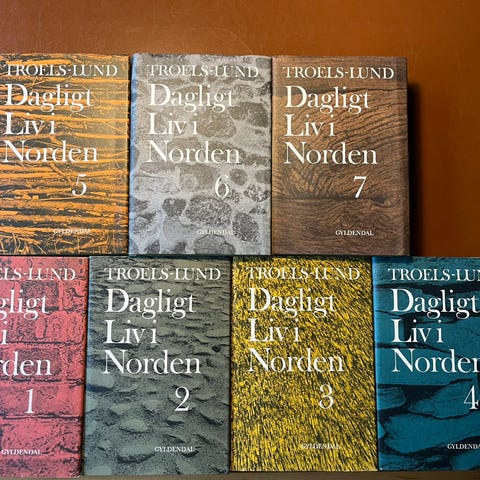 Det fornemme bogværk Dagligt Liv i Norden i det sekstende Århundrede af Troels-Lund. Komplet udgave, bind 1-7. Gyldendal 1968.