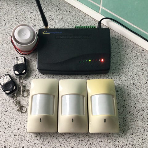 Alarm til huset. Visonic med 3 rumfølere, og Gsm modul så den kan ringe op til 3 telefonnumre ved indbrud.