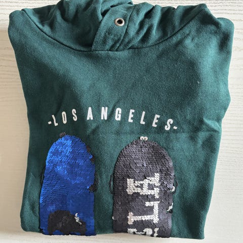 Brun bomuldstrøje H&M m. vendbare pailletter str. 6-8 år. Pailletterne er orange på den ene side, grønne på den anden. Flot stand. Fra røgfrit hjem. Sender gerne på købers regning