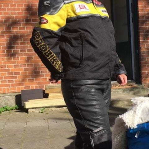 Med beskyttelse i ryg , skulder, albuer, knæ og hofter.