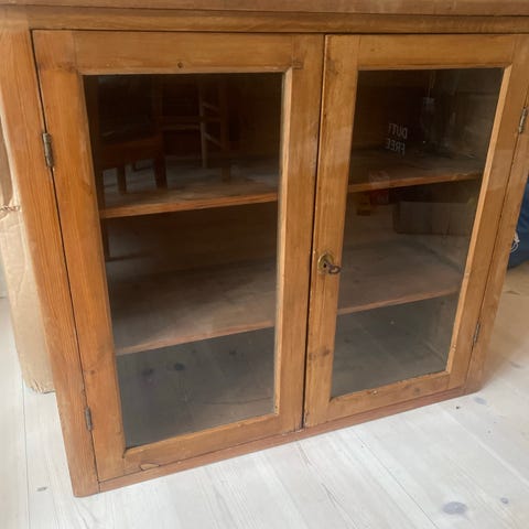 Hængeskab med skydelåger i glas
