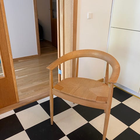 1 stk. Gunnar Falsig spisebordstol i massiv bøg med flet sæde. Den er i pæn stand med en smule patina på sædet