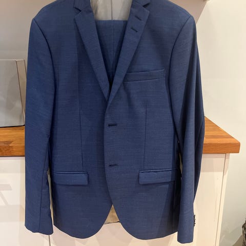 Mørkeblåt Tiger of Sweden jakkesæt. Helt alm i størrelsen til konfirmand. Kun brugt den ene dag.